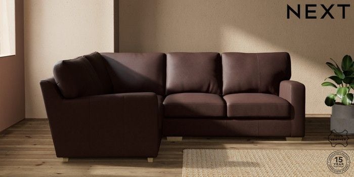 7.0.3 Buy Brooklyn Leather Small Corner Sofa - Left Hand Rustic Leather Dark Brown Slim Block - Light from the Next UK online shop Click here to use our accessible website