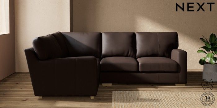 7.0.3 Buy Brooklyn Leather Small Corner Sofa - Left Hand Turin Leather Dark Brown Slim Block - Light from the Next UK online shop Click here to use our accessible website