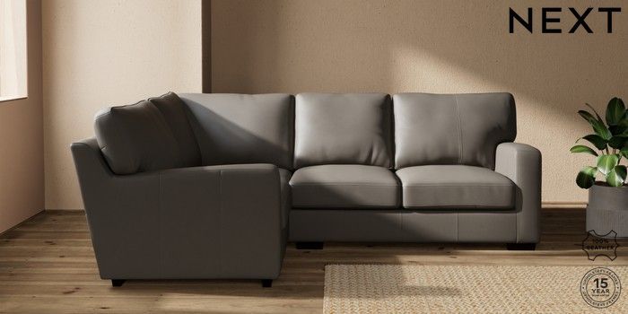7.0.3 Buy Brooklyn Leather Small Corner Sofa - Left Hand Turin Leather French Grey Slim Block - Dark from the Next UK online shop Click here to use our accessible website