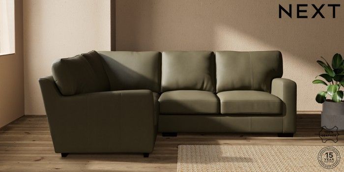 7.0.3 Buy Brooklyn Leather Small Corner Sofa - Left Hand Turin Leather Moss Green Slim Block - Dark from the Next UK online shop Click here to use our accessible website