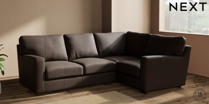 6.12.1 Buy Brooklyn Leather Small Corner Sofa - Right Hand Antiqued Leather Dark Brown Slim Block - Mid from the Next UK online shop Click here to use our accessible website