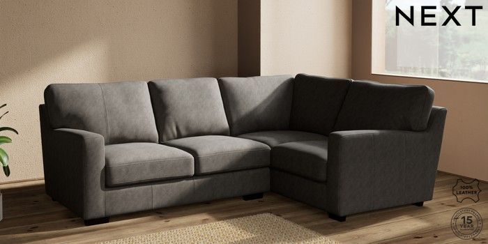 6.12.1 Buy Brooklyn Leather Small Corner Sofa - Right Hand Antiqued Leather Grey Slim Block - Dark from the Next UK online shop Click here to use our accessible website