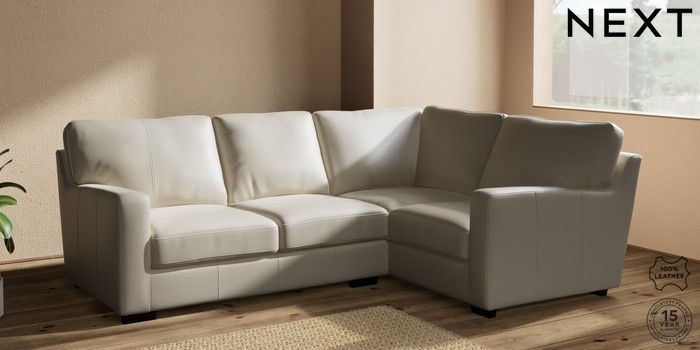 6.12.1 Buy Brooklyn Leather Small Corner Sofa - Right Hand Columbia Silver Grey Slim Block - Dark from the Next UK online shop Click here to use our accessible website