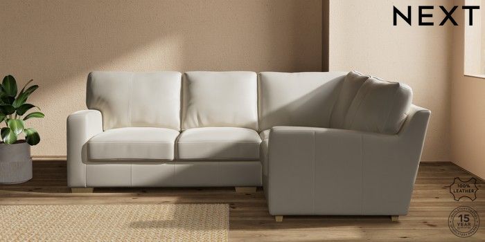 7.0.3 Buy Brooklyn Leather Small Corner Sofa - Right Hand Columbia Silver Grey Slim Block - Light from the Next UK online shop Click here to use our accessible website
