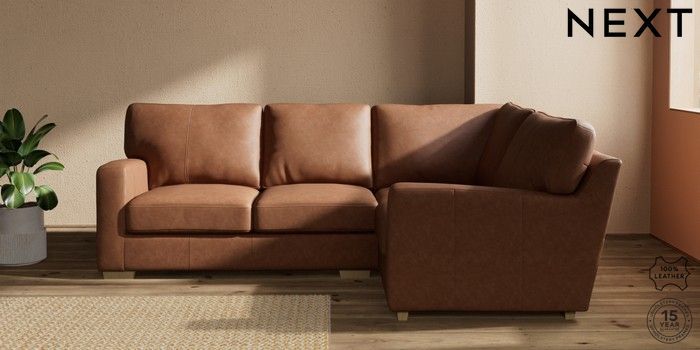 7.0.3 Buy Brooklyn Leather Small Corner Sofa - Right Hand Rustic Leather Light Brown Slim Block - Light from the Next UK online shop Click here to use our accessible website