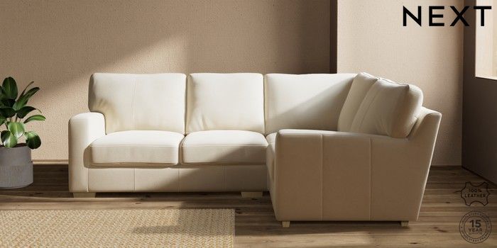 7.0.3 Buy Brooklyn Leather Small Corner Sofa - Right Hand Turin Leather Cream Slim Block - Light from the Next UK online shop Click here to use our accessible website