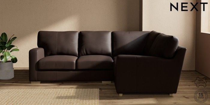 7.0.3 Buy Brooklyn Leather Small Corner Sofa - Right Hand Turin Leather Dark Brown Slim Block - Light from the Next UK online shop Click here to use our accessible website