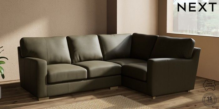 6.12.1 Buy Brooklyn Leather Small Corner Sofa - Right Hand Turin Leather Moss Green Slim Block - Light from the Next UK online shop Click here to use our accessible website