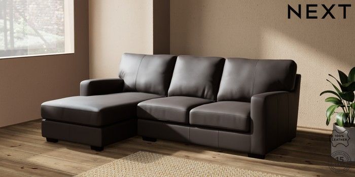 6.12.1 Buy Brooklyn Leather Small Sofa Chaise - Left Hand Columbia Dark Brown Slim Block - Dark from the Next UK online shop Click here to use our accessible website