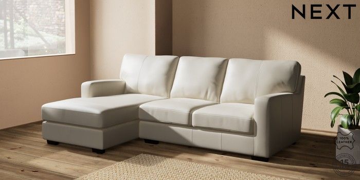 6.12.1 Buy Brooklyn Leather Small Sofa Chaise - Left Hand Columbia Silver Grey Slim Block - Dark from the Next UK online shop Click here to use our accessible website