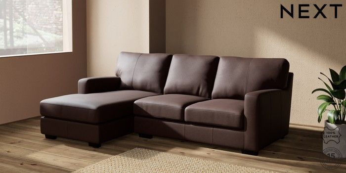6.12.1 Buy Brooklyn Leather Small Sofa Chaise - Left Hand Rustic Leather Dark Brown Slim Block - Dark from the Next UK online shop Click here to use our accessible website