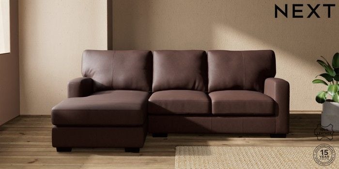 7.0.3 Buy Brooklyn Leather Small Sofa Chaise - Left Hand Rustic Leather Dark Brown Slim Block - Dark from the Next UK online shop Click here to use our accessible website