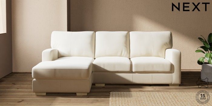 7.0.3 Buy Brooklyn Leather Small Sofa Chaise - Left Hand Turin Leather Cream Slim Block - Light from the Next UK online shop Click here to use our accessible website