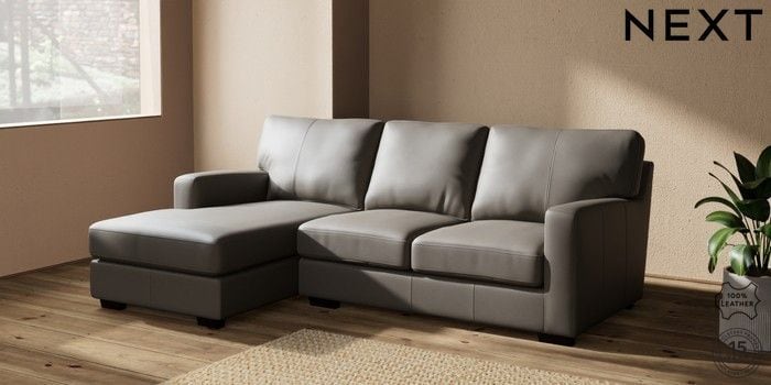 6.12.1 Buy Brooklyn Leather Small Sofa Chaise - Left Hand Turin Leather French Grey Slim Block - Dark from the Next UK online shop Click here to use our accessible website