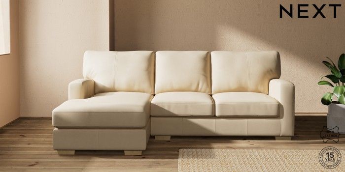 7.0.3 Buy Brooklyn Leather Small Sofa Chaise - Left Hand Turin Leather Light Natural Slim Block - Light from the Next UK online shop Click here to use our accessible website
