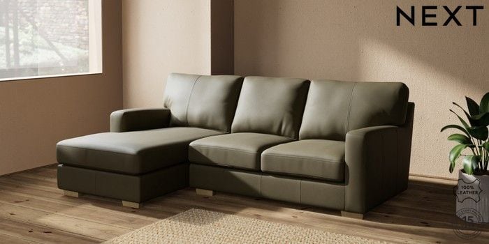 6.12.1 Buy Brooklyn Leather Small Sofa Chaise - Left Hand Turin Leather Moss Green Slim Block - Light from the Next UK online shop Click here to use our accessible website
