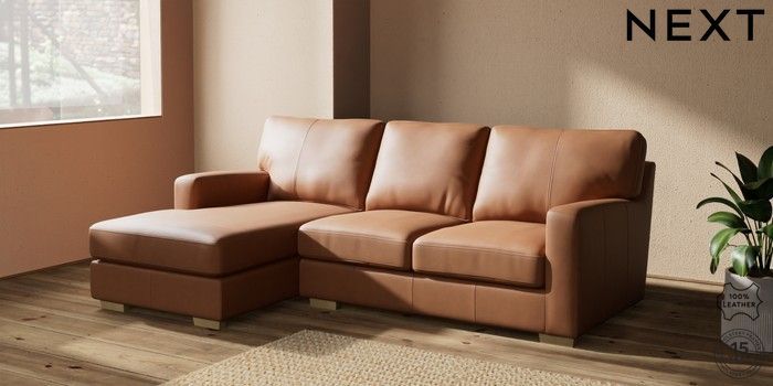 6.12.1 Buy Brooklyn Leather Small Sofa Chaise - Left Hand Turin Leather Tan Brown Slim Block - Light from the Next UK online shop Click here to use our accessible website