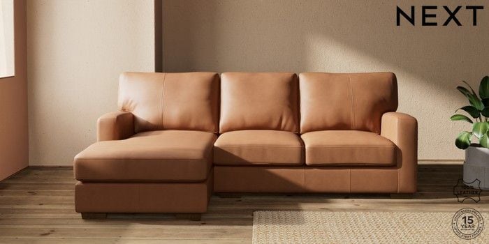 7.0.3 Buy Brooklyn Leather Small Sofa Chaise - Left Hand Turin Leather Tan Brown Slim Block - Mid from the Next UK online shop Click here to use our accessible website