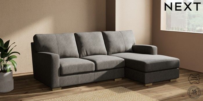 6.12.1 Buy Brooklyn Leather Small Sofa Chaise - Right Hand Antiqued Leather Grey Slim Block - Light from the Next UK online shop Click here to use our accessible website