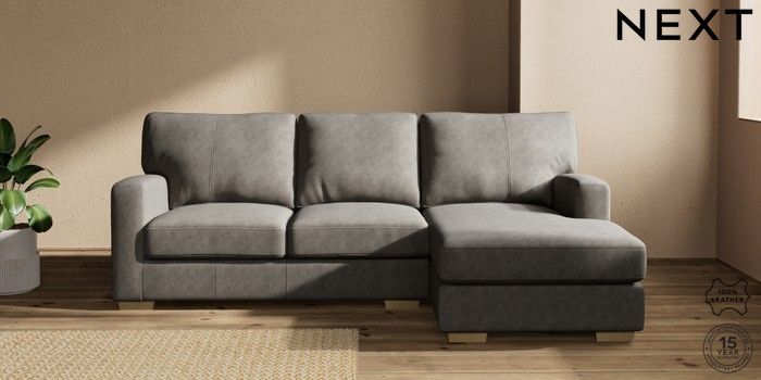 7.0.3 Buy Brooklyn Leather Small Sofa Chaise - Right Hand Antiqued Leather Grey Slim Block - Light from the Next UK online shop Click here to use our accessible website