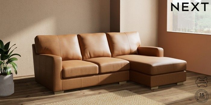 6.12.1 Buy Brooklyn Leather Small Sofa Chaise - Right Hand Antiqued Leather Light Tan Brown Slim Block - Light from the Next UK online shop Click here to use our accessible website