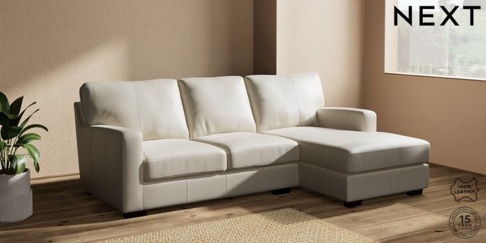 6.12.1 Buy Brooklyn Leather Small Sofa Chaise - Right Hand Columbia Silver Grey Slim Block - Dark from the Next UK online shop Click here to use our accessible website