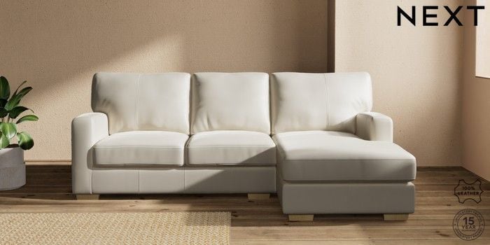 7.0.3 Buy Brooklyn Leather Small Sofa Chaise - Right Hand Columbia Silver Grey Slim Block - Light from the Next UK online shop Click here to use our accessible website