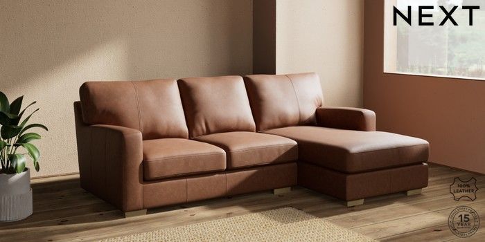 6.12.1 Buy Brooklyn Leather Small Sofa Chaise - Right Hand Rustic Leather Light Brown Slim Block - Light from the Next UK online shop Click here to use our accessible website