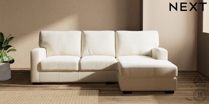 7.0.3 Buy Brooklyn Leather Small Sofa Chaise - Right Hand Turin Leather Cream Slim Block - Dark from the Next UK online shop Click here to use our accessible website