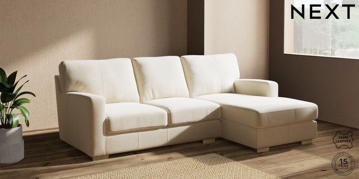 6.12.1 Buy Brooklyn Leather Small Sofa Chaise - Right Hand Turin Leather Cream Slim Block - Light from the Next UK online shop Click here to use our accessible website