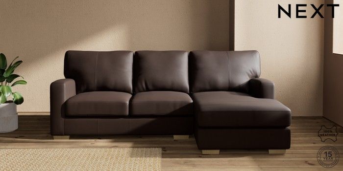 7.0.3 Buy Brooklyn Leather Small Sofa Chaise - Right Hand Turin Leather Dark Brown Slim Block - Light from the Next UK online shop Click here to use our accessible website
