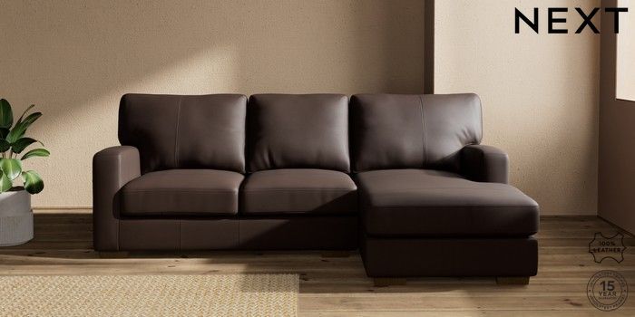 7.0.3 Buy Brooklyn Leather Small Sofa Chaise - Right Hand Turin Leather Dark Brown Slim Block - Mid from the Next UK online shop Click here to use our accessible website