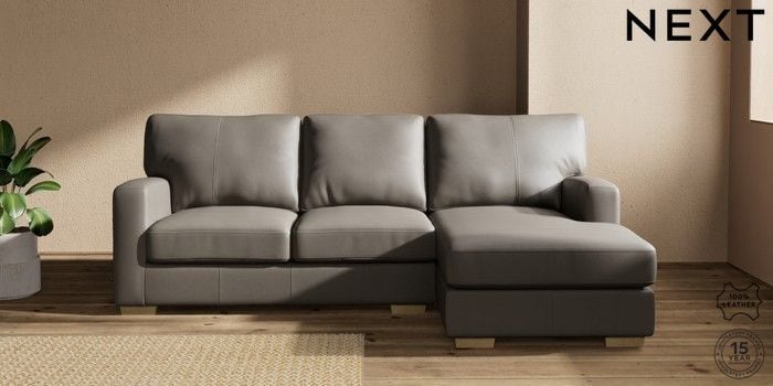 7.0.3 Buy Brooklyn Leather Small Sofa Chaise - Right Hand Turin Leather French Grey Slim Block - Light from the Next UK online shop Click here to use our accessible website