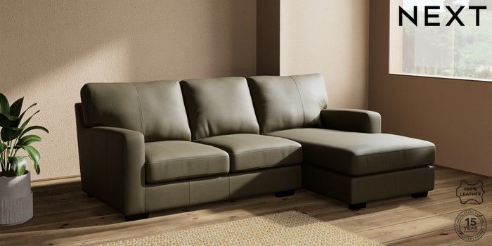 6.12.1 Buy Brooklyn Leather Small Sofa Chaise - Right Hand Turin Leather Moss Green Slim Block - Dark from the Next UK online shop Click here to use our accessible website