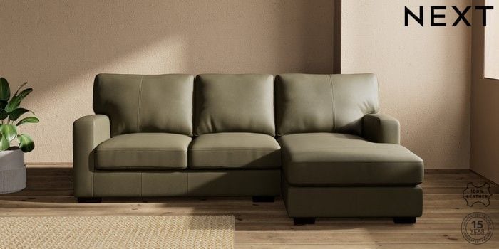 7.0.3 Buy Brooklyn Leather Small Sofa Chaise - Right Hand Turin Leather Moss Green Slim Block - Dark from the Next UK online shop Click here to use our accessible website