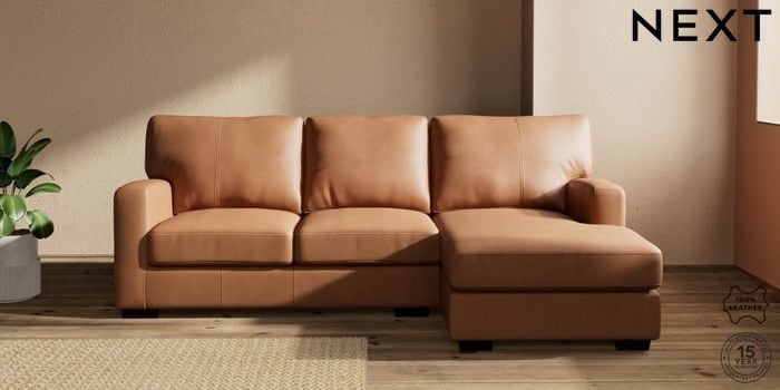 7.0.3 Buy Brooklyn Leather Small Sofa Chaise - Right Hand Turin Leather Tan Brown Slim Block - Dark from the Next UK online shop Click here to use our accessible website