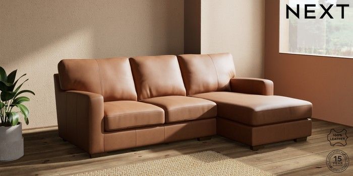 6.12.1 Buy Brooklyn Leather Small Sofa Chaise - Right Hand Turin Leather Tan Brown Slim Block - Mid from the Next UK online shop Click here to use our accessible website