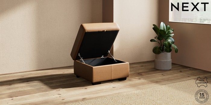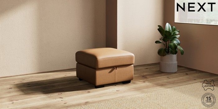 7.0.3 Buy Brooklyn Leather Storage Footstool Antiqued Leather Light Tan Brown Small Slim Block - Dark from the Next UK online shop Click here to use our accessible website