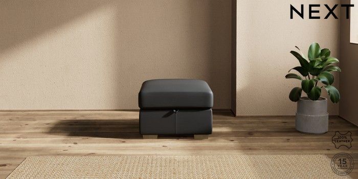 6.12.1 Buy Brooklyn Leather Storage Footstool Columbia Black Small Slim Block - Light from the Next UK online shop Click here to use our accessible website