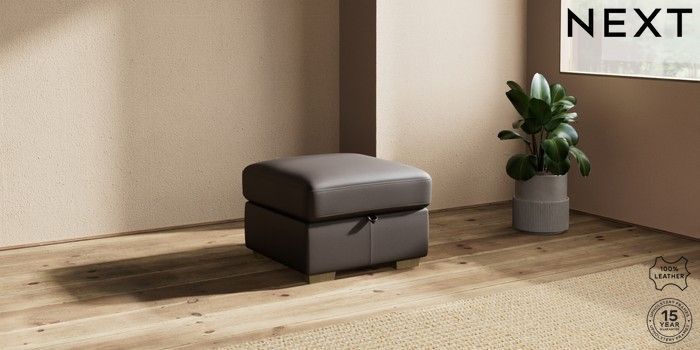 7.0.3 Buy Brooklyn Leather Storage Footstool Columbia Dark Brown Small Slim Block - Light from the Next UK online shop Click here to use our accessible website