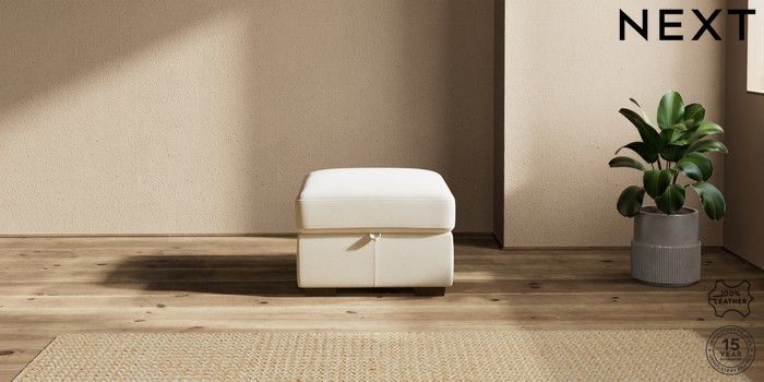 6.12.1 Buy Brooklyn Leather Storage Footstool Turin Leather Cream Small Slim Block - Mid from the Next UK online shop Click here to use our accessible website