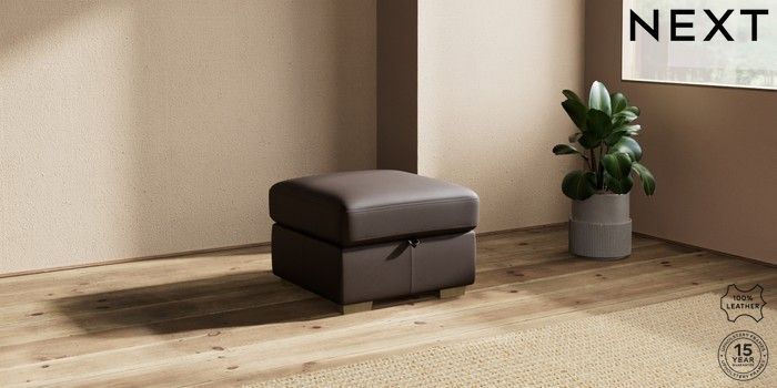 7.0.3 Buy Brooklyn Leather Storage Footstool Turin Leather Dark Brown Small Slim Block - Light from the Next UK online shop Click here to use our accessible website