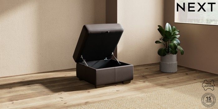 7.0.3 Buy Brooklyn Leather Storage Footstool Turin Leather Dark Brown Small Slim Block - Mid from the Next UK online shop Click here to use our accessible website