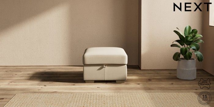 6.12.1 Buy Brooklyn Leather Storage Footstool Turin Leather Light Natural Small Slim Block - Light from the Next UK online shop Click here to use our accessible website