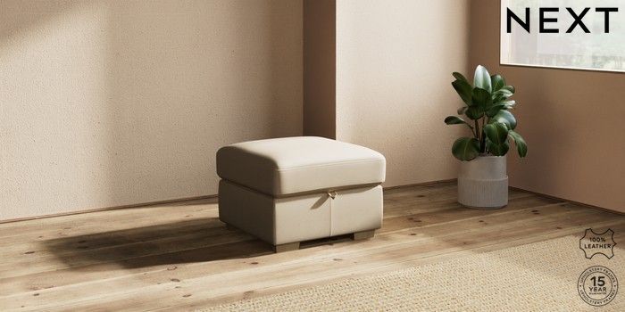7.0.3 Buy Brooklyn Leather Storage Footstool Turin Leather Light Natural Small Slim Block - Light from the Next UK online shop Click here to use our accessible website