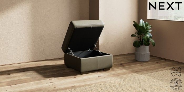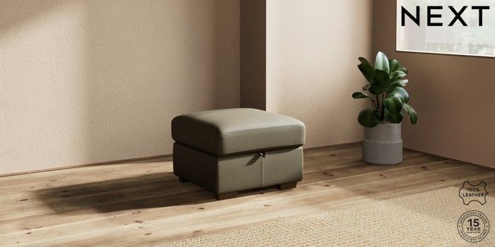 7.0.3 Buy Brooklyn Leather Storage Footstool Turin Leather Moss Green Small Slim Block - Mid from the Next UK online shop Click here to use our accessible website