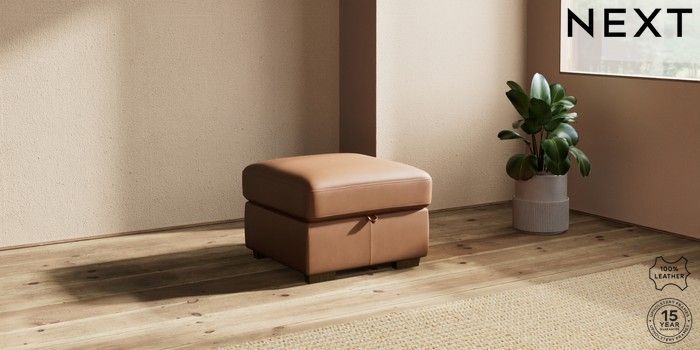 7.0.3 Buy Brooklyn Leather Storage Footstool Turin Leather Tan Brown Small Slim Block - Mid from the Next UK online shop Click here to use our accessible website