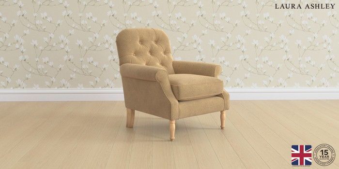 6.12.1 Buy Cambridge Button Back by Laura Ashley Armchair Lundar Chenille Caramel Natural Medium Turned - Light Oak from the Next UK online shop Click here to use our accessible website