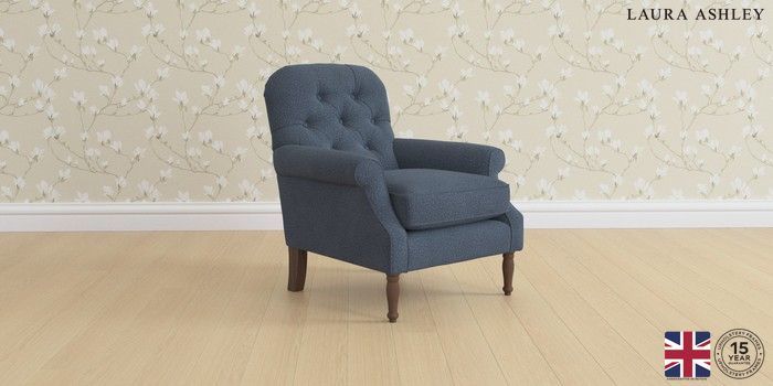 6.12.1 Buy Cambridge Button Back by Laura Ashley Armchair Lundar Chenille Navy Blue Medium Turned - Chestnut from the Next UK online shop Click here to use our accessible website