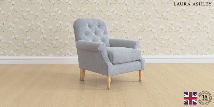 6.12.1 Buy Cambridge Button Back by Laura Ashley Armchair Peyton Powder Blue Medium Turned - Light Oak from the Next UK online shop Click here to use our accessible website